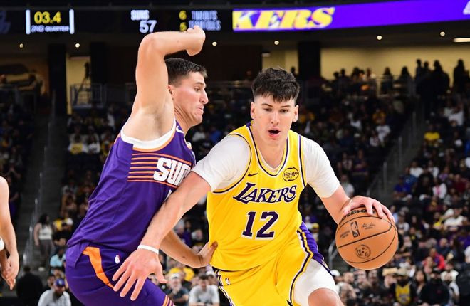 本場比賽中,湖人的先發(fā)側(cè)翼新援杰克-拉拉維亞(Jake LaRavia)的表現(xiàn)并不能令人感到滿意。拉拉維亞全場出場19分04秒,投籃6中3,三分線外2中1,得到了7分5籃板1助攻的數(shù)據(jù),還有2次失誤和3次犯規(guī),正負值為-15。拉拉維亞在進攻端的表現(xiàn)還算是馬馬虎虎,利用有限的出手次數(shù),他倒是也展現(xiàn)出了比較全面的得分能力,不過他在支配球方面的能力也沒有辦法發(fā)揮出來。另一方面,拉拉維亞在防守端其實是被大家寄予了厚望的,大家都認為他有機會成為一名合格的外線防守者,并且在防守端承擔起大量的責任,但是至少在本場比賽中,他在防守端的表現(xiàn)其實是不太理想甚至可以說是有些糟糕的。拉拉維亞并沒有展現(xiàn)出足夠出色的防守能力,對手可以非常輕松地突破他的防守,這顯然并不是一個好的信號。