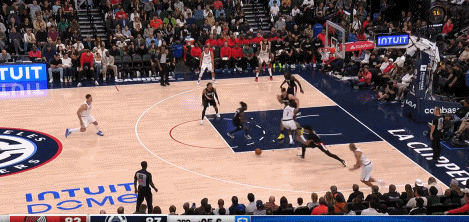 這一球,藝高人膽大登哥,一手背傳擊地,籃球準(zhǔn)確彈到祖巴茨手中,順勢(shì)就是一記隔扣克林根。