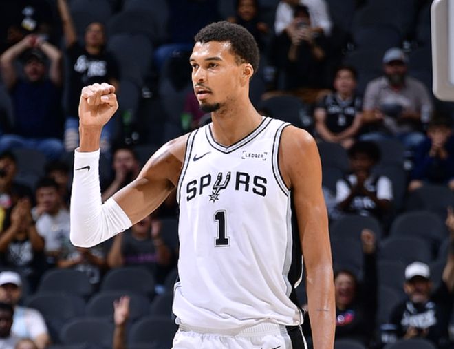 馬刺主場迎戰(zhàn)籃網(wǎng),此戰(zhàn)馬刺少了??怂?、索漢、科內(nèi)特、奧利尼克,戰(zhàn)力折損很大,不過在文班亞馬的帶領下馬刺很快拉開分差,一度領先26分,隨后馬刺有所松懈,籃網(wǎng)開始迅猛追分,他們?nèi)质指型蝗蛔兊没馃幔欢确闯确?,隨后哈珀、文班聯(lián)手發(fā)力,馬刺重新取得領先,最終以11分優(yōu)勢擊敗籃網(wǎng)。文班21中9(三分6中3)得到31分14板4助3斷6帽,哈珀11中8得到20分6板8助2斷,失誤0次,表現(xiàn)太出色,籃網(wǎng)方面托馬斯25中11(三分12中5)砍下40分2板。馬刺贏球后3勝0負,戰(zhàn)績和雷霆一樣,由于面對西部球隊馬刺是2勝0負,雷霆是1勝0負,馬刺得以排名西部第一,雷霆變成第二。