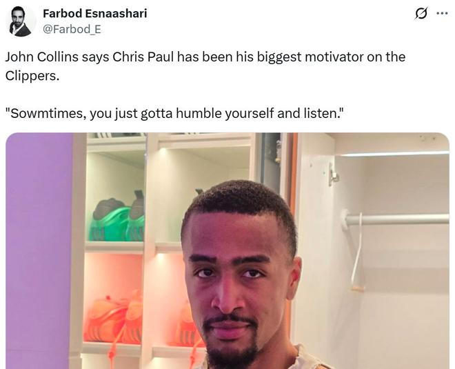 科林斯則坦言保羅是自己加盟快船隊(duì)后的最大動(dòng)力,他總是與每個(gè)人交談,無論你當(dāng)時(shí)愿不愿意,他總是嘗試引領(lǐng)你走向正確的方向。