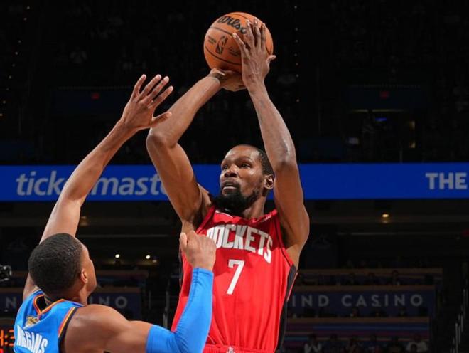 庫里在對陣火箭的系列賽中場均貢獻24分、5.9個籃板、5.7次助攻、1.1次搶斷和0.9次蓋帽,尤其在搶七中多次通過關鍵進攻撲滅火箭的反撲勢頭。然而,勇士在第二輪面對森林狼時,缺少庫里的四場比賽幾乎被對手完全壓制。勇士球員追夢格林也在休賽期坦言,與火箭的首輪對決是他們經(jīng)歷過的最激烈對抗。這一切都表明,火箭的“死亡五大”并非冒險之舉,而是將籃球比賽拉回到最原始的對抗形態(tài)——身高與體能的硬碰硬?;鸺M杜蘭特的主要目的是彌補進攻端的不足,尤其是在關鍵時刻的攻堅能力。